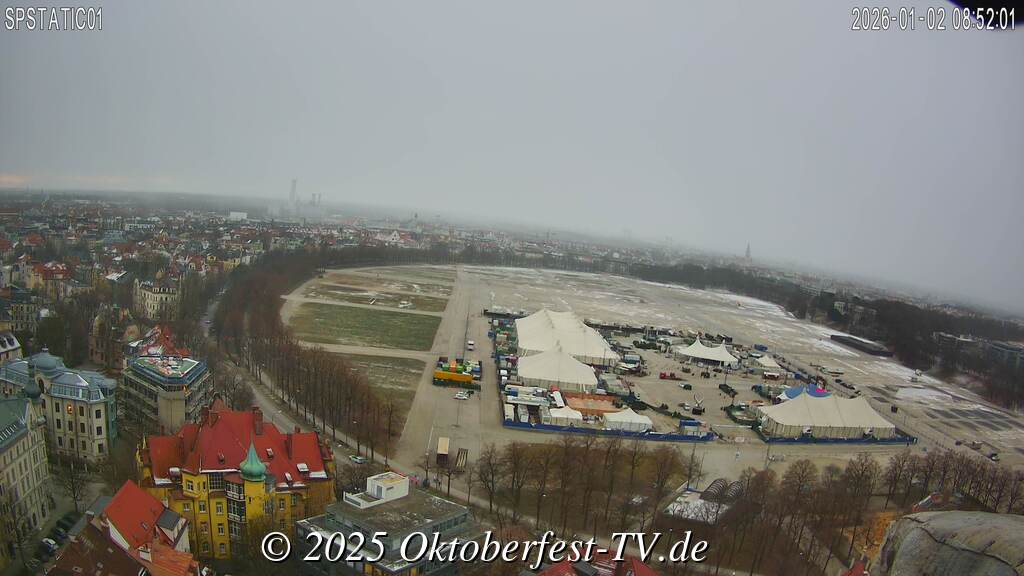 Unsere Webcam hat von der Paulskirche am nördlichen Rand der Theresienwiese einen umfassenden Blick auf das Festgelände. Mit unserer feststehenden Webcam können sie von oben das Festgeschehen auf dem Oktoberfest beobachten.