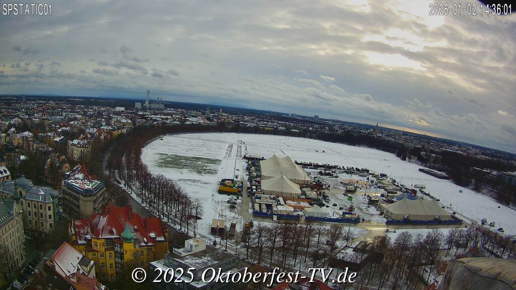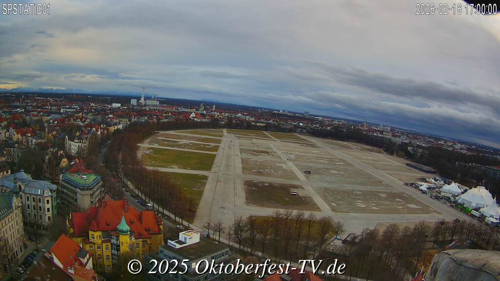 Unsere Webcam hat von der Paulskirche am nördlichen Rand der Theresienwiese einen umfassenden Blick auf das Festgelände. Mit unserer feststehenden Webcam können sie von oben das Festgeschehen auf dem Oktoberfest beobachten.