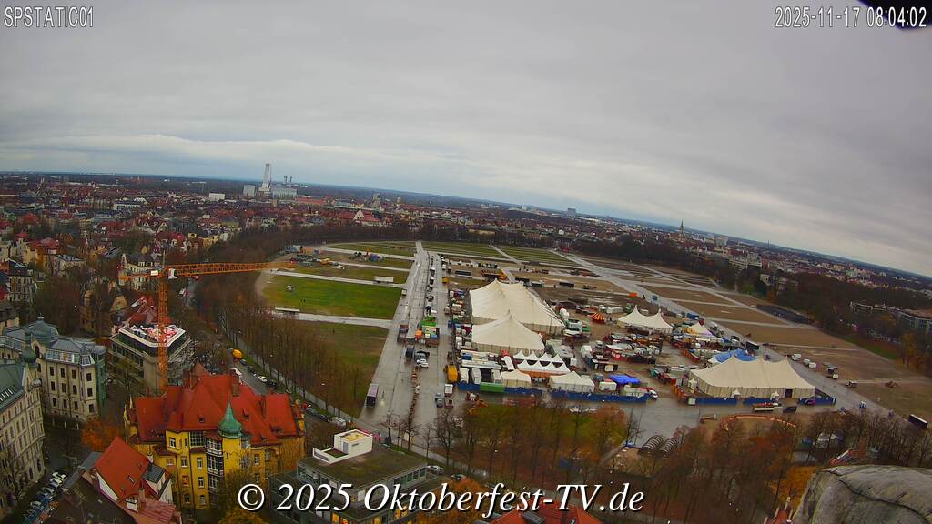 : Durch die Sanierungsarbeiten an der Kirche und der Absage des Oktoberfests wegen Corona mussten wir den Wiesn-Überblick in der Aufbauphase für einige Jahre pausieren - seit diesem Jahr können wir Ihnen wieder die durchgängige Live-Kamera anbieten. Zum Beginn des Oktoberfests kommen dann noch Kameras aus dem Hofbräuzelt und eine bewegliche Live-Kamera auf der Paulskirche hinzu.